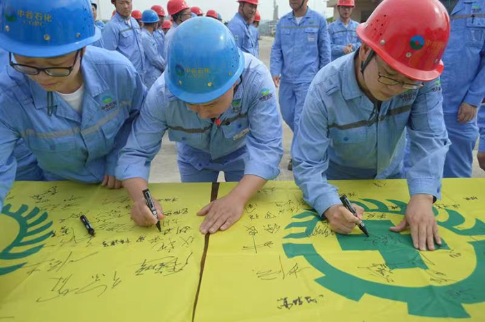 生產副總經(jīng)理周洪建宣布全體參會人員在安全旗簽名并授旗懸掛。