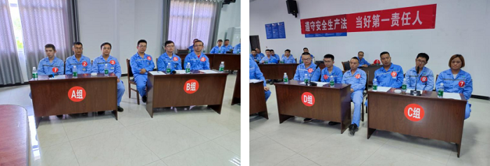 評(píng)審組組長李游部長宣讀安全技術(shù)知識(shí)競(jìng)賽評(píng)分規(guī)則,各參賽選手清楚知曉答題細(xì)節(jié),在主持人吳會(huì)的宣布下,比賽正式開始。據(jù)了解為保證本次競(jìng)賽活動(dòng)的順利進(jìn)行,成立競(jìng)賽活動(dòng)領(lǐng)導(dǎo)小組,由公司副總經(jīng)理周洪建擔(dān)任組長,分別設(shè)立評(píng)審小組,計(jì)分小組,工作小組。參賽隊(duì)員由公司各車間、部室推選12人,為保證本次競(jìng)賽公平、公正、公開,所有的參賽隊(duì)的組號(hào)都是由參賽人員親自抽簽決定組隊(duì),抽簽產(chǎn)生4組參賽隊(duì)(A、B、C、D),每組3人。