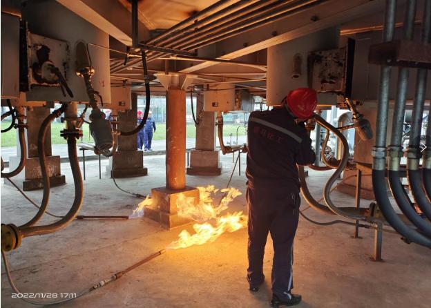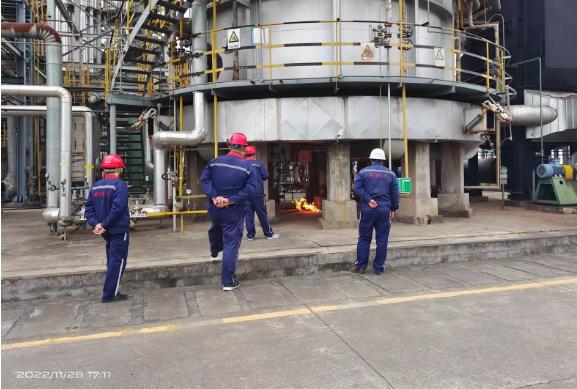 下午,開工進(jìn)入到關(guān)鍵節(jié)點(diǎn),公司周總、曹總監(jiān)親臨現(xiàn)場(chǎng),會(huì)同生產(chǎn)、技術(shù)、HSSE以及機(jī)、電、儀表等相關(guān)職能部門全程指導(dǎo)和配合。隨著加熱爐進(jìn)爐燃?xì)獾囊,最后一步試漏完成?7:11分加熱爐順利點(diǎn)火。開工進(jìn)入升溫的生產(chǎn)流程。